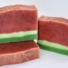 Close your eyes and imagine you are in an English Tea Garden. The scents of of sweet roses rise to meet your oral sensory and provide a wonderful sensation of imagined beauty. This combination of essential oils is truly exceptional, with just the right amount of sweetness and soft rose sent. The colors are meant to remind you of roses. Chamomile tea was used in place of water during the manufacturing of these soaps. Even if a real sweetness is not to your liking, this soap is balanced out with citrus and earthy scents, rounding out the note and making it quite appealing.